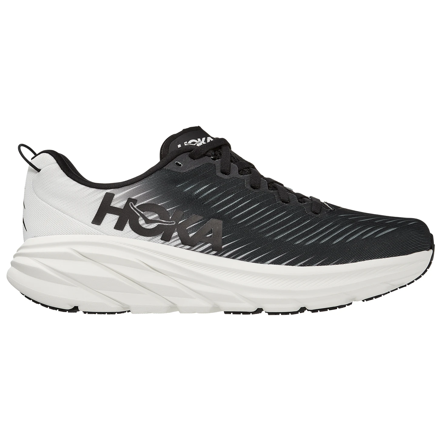 Le modèle Rincon 3 de la marque HOKA est ultraléger et convient aussi bien à la prochaine course sur route qu’à un entraînement quotidien autour de son domicile. Ces chaussures de running possèdent un drop de cinq millimètres. Grâce à la construction asymétrique de la languette, les chaussures reposent parfaitement sur les pieds et ne glissent pas, même pendant les entraînements de vitesse. La languette au talon est pratique pour se chausser et se déchausser facilement.